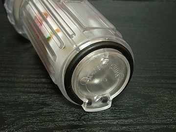 | 【特 長】(製品台紙より) ●明るいクリプトン球使用 ●ライトを吊るして使用できるリング付き - - - - - - - - - - - - - - - - - - - - - - - - - - - - - - - - - - - - - - - - - - - - - - - - - 北は北海道から、南は沖縄まで、全国に767もの店舗をもつワンプライスショップ『CAN★DO』にて、2006年春頃から販売されている懐中電灯「クリスタルライト」です。透き通るクリスタルボディが美しい、樹脂製大量生産ライトですが、性能は良く、仕様も豪華です。 スイッチは間欠点灯が可能なスライドON/OFFタイプです。割と大型で、溝の付いた樹脂製のスイッチは、ライトを持った手の親指で操作をするのに丁度良い位置にあります。使い始めはとても固く「ガチッ!ガチッ!」っとスゴイ音がします。数十回ON/OFF操作を繰り返したところ、いくらかは動きが滑らかになりました。また、スイッチを点灯状態に「ガチッ!」っとロックしなくても、スイッチ半ズラし状態での一時的な点灯が可能です。 光源には4.8V/0.5Aピリケン(クリプトンガス)球を使用し、「強力」と呼べるだけの明るさがあります。リフレクター(反射鏡)は、メッキが施された樹脂製で、表面には六角形のパターンが沢山あります。これにより、ムラの少ない光を照射することができます。クリア樹脂製のレンズの中央には、直径12mm程の盛り上がりがありますが、集光レンズとしての効果は確認できません。これはレンズの強度を上げるためのポッコリなのかもしれません。焦点の調節はできません。アルカリ電池使用時の有効射程は、屋外で15〜29メートルといったところでしょうか。 * ライトの値段を考慮しなくとも、明るさ・照射パターン共に満足できます。あと、電池ケースが、ほぼ単一乾電池サイズというのもおもしろいライトです。あと、リフレクターがマグライトとほぼ同サイズというのも、嬉しいライトです。 |