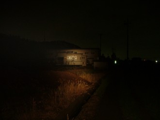 | 写真中央部の建物を何とか照射 | 建物はうっすらと見える程度 |